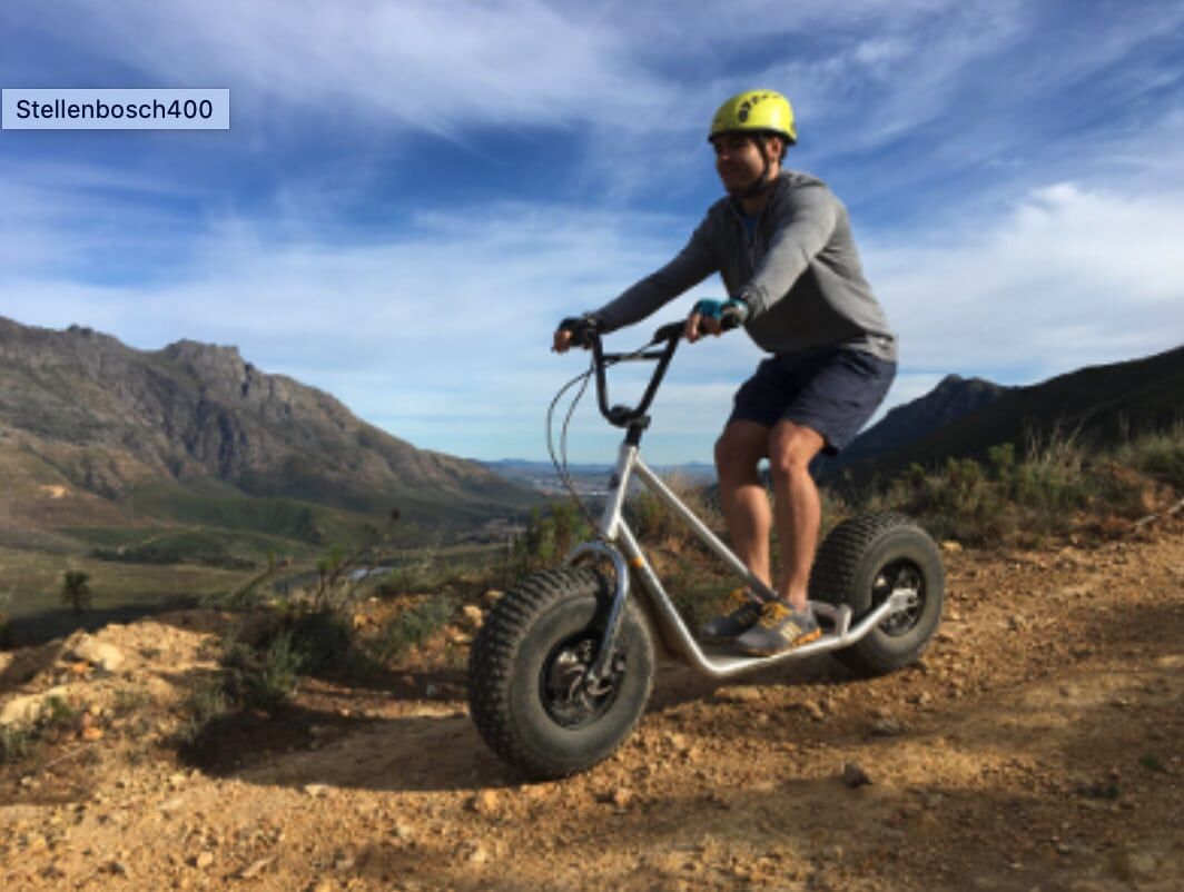 Jonkershoek Reserve is tucked away at the back of Stellenbosch. Explore this gem of Stellenbosch on the back a Monster Mountain® Scooter. During the tour you will experience the beauty of these alpine like mountains surrounding Stellenbosch in a fun and active way. Stunning views, majestic mountains and endless downhill slopes is what Scootours® Stellenbosch is all about.
